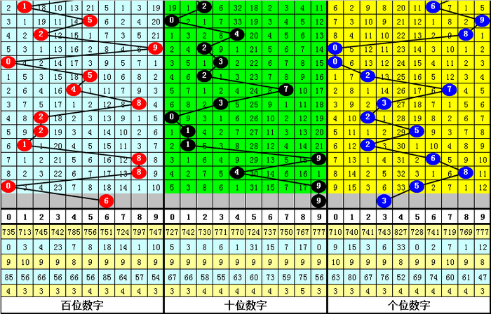 十位推选:奇数推崇较热,本期展望奇号链接热出;另外,该位0、1路号码近期大热,本期该位参考号码9。